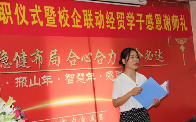 河南經貿職業學院會計學院白石書記致辭中說,新員工要像新學生一樣有“六新”:新起點、新環境、新伙伴、新展示、新評價、新發展;同學們找到了人生的知名份工作,良好的開始是成功的捷徑,走出校園這所大學,跨進更大的校園,這就是社會大學,期望同學們繼續堅持學習,要有終身學習的心態;對家人、對學校、對社會要有一顆感恩之心。最后,他勉勵同學們要把握好機會,無論在什么崗位,都要堅持走下去,要沉淀下來,唯有堅持,才能收獲驚喜。