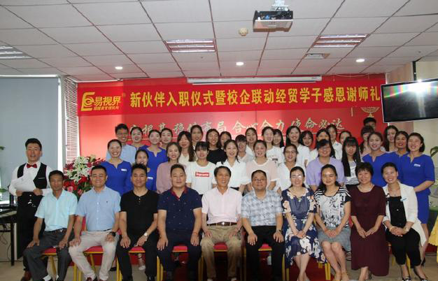 易視界新伙伴入職儀式暨校企聯動經貿學子謝師禮,6月19日在易視界實業總部舉行。河南經貿職業學院招生就業處楊瑩副處長、會計學院白石書記、侯曉坤院長、樊紅燕副院長以及易視界實業知名層,共同見證了30多位新伙伴的入職儀式,并同期舉行了經貿學子易視界老員工的謝師禮。